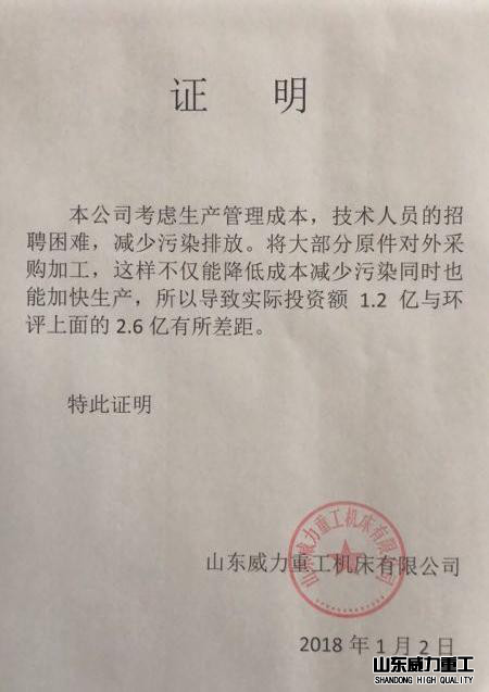 項目名稱:山東威力重工機床有限公司數(shù)控機床、鍛壓機械生產(chǎn)線建設(shè)項目;